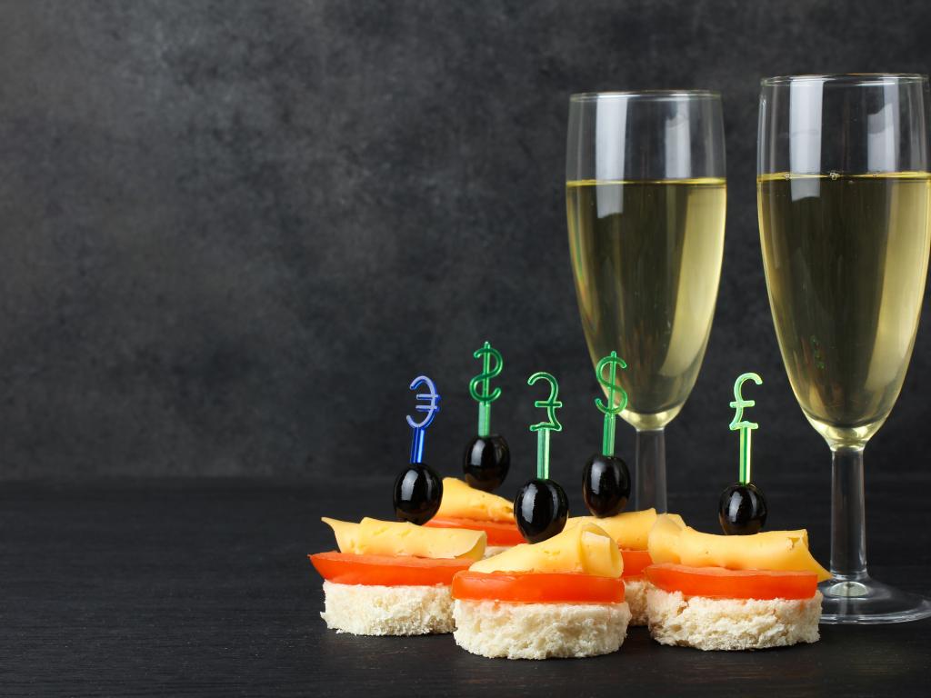 Wallpaper Two glasses of champagne on a table with canapes