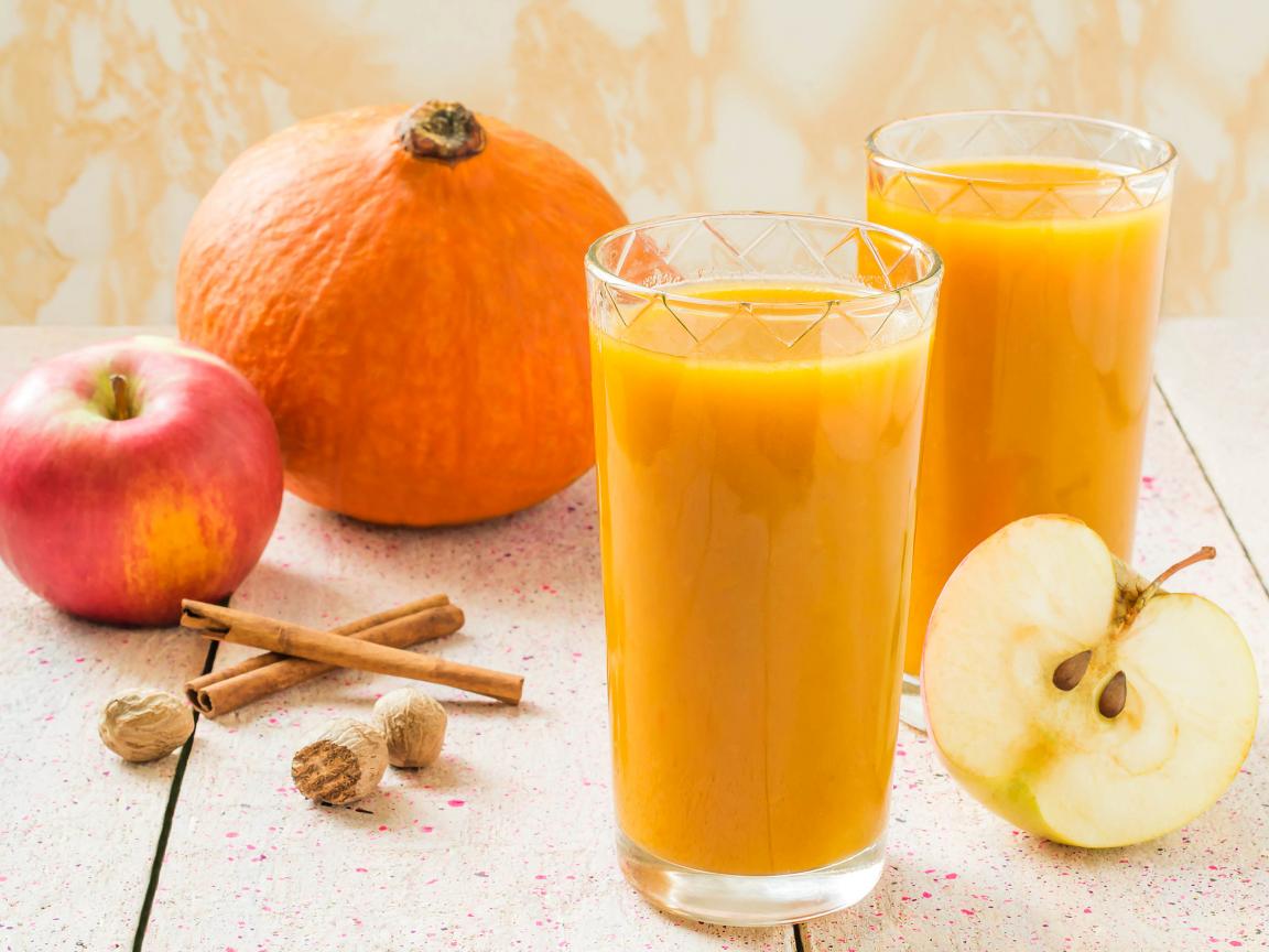 Wallpaper Freshly squeezed juice in glasses on a table with fruits