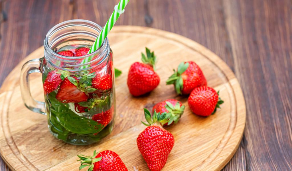 Wallpaper Drink in a jar with strawberries and a straw