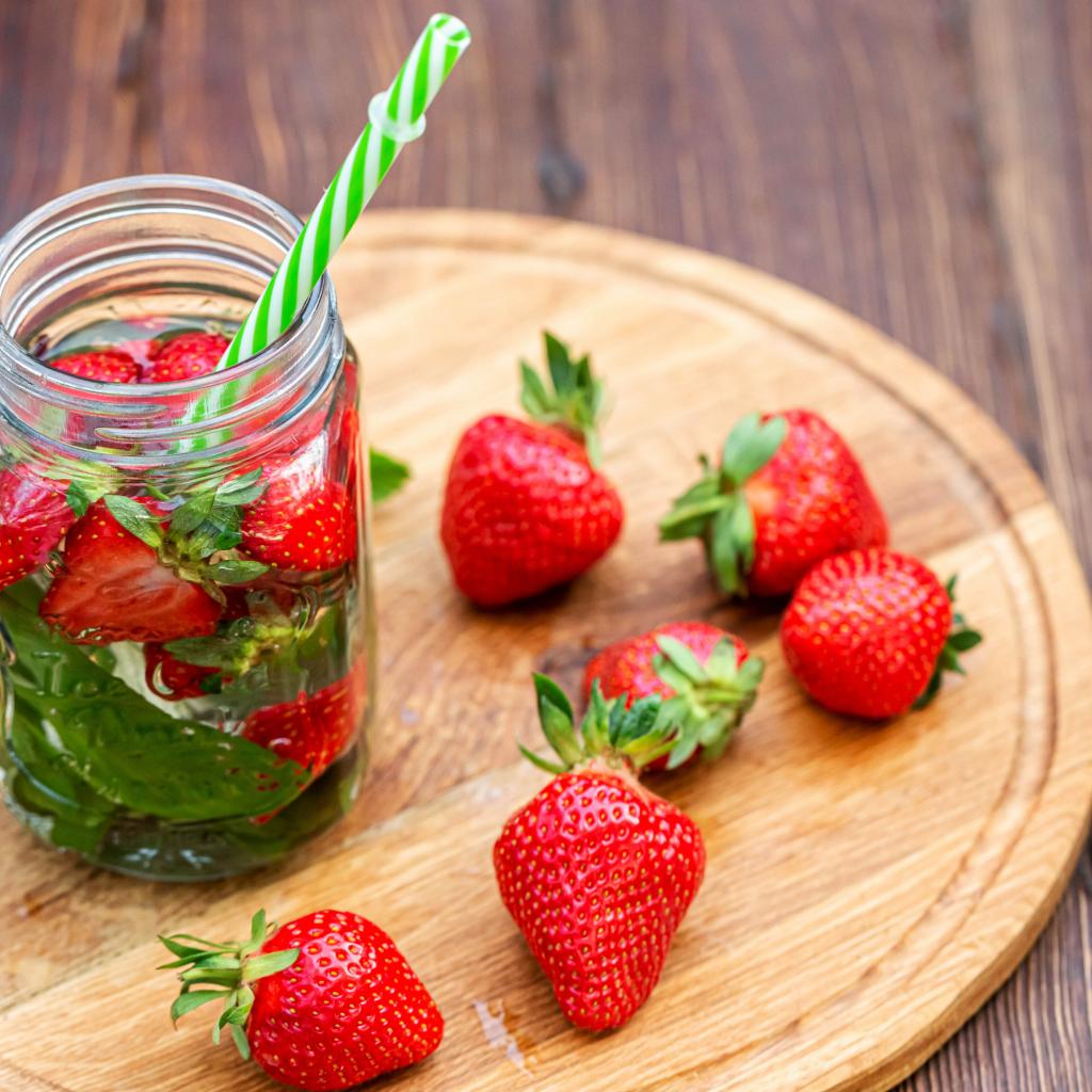 Wallpaper Drink in a jar with strawberries and a straw