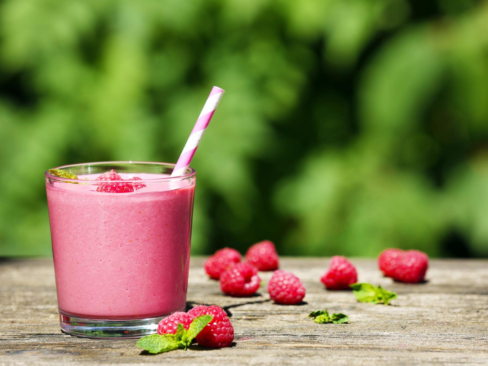 Wallpaper Cocktail in a glass with a straw and raspberries