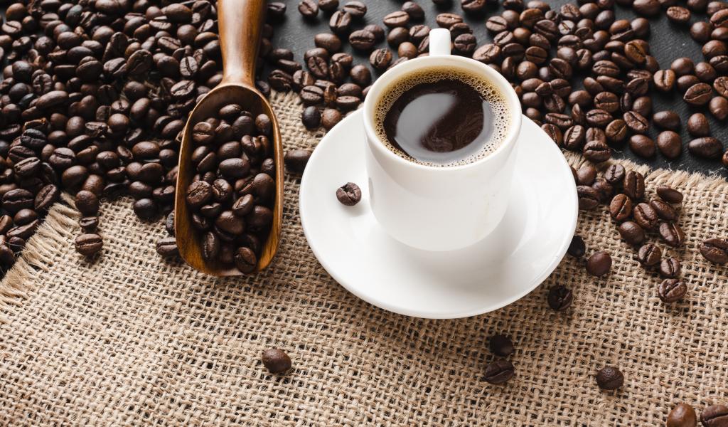 Wallpaper Cup of coffee on the table with grains