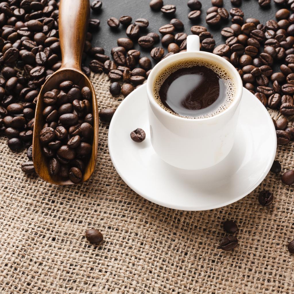 Wallpaper Cup of coffee on the table with grains