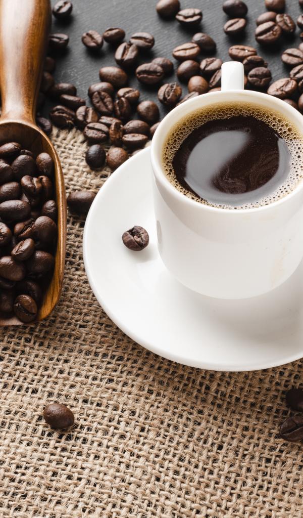 Wallpaper Cup of coffee on the table with grains
