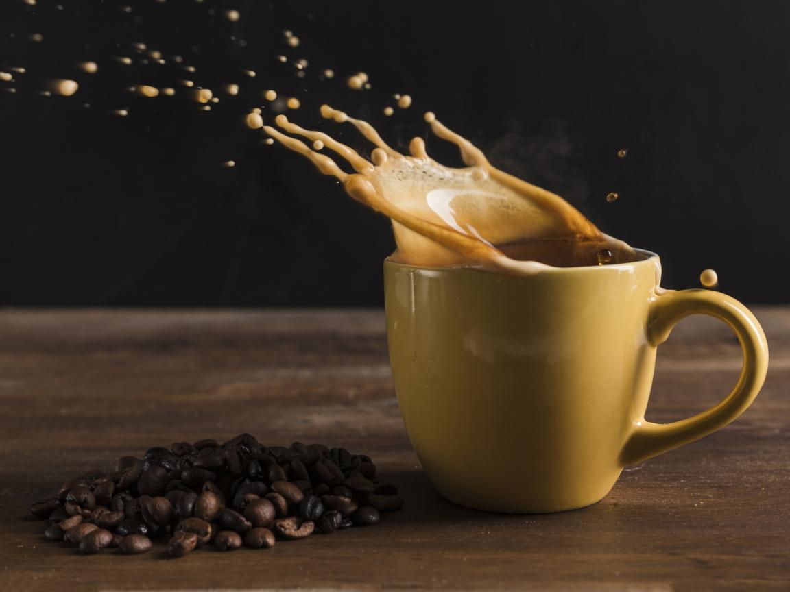 Wallpaper Splashing coffee on the table in a cup