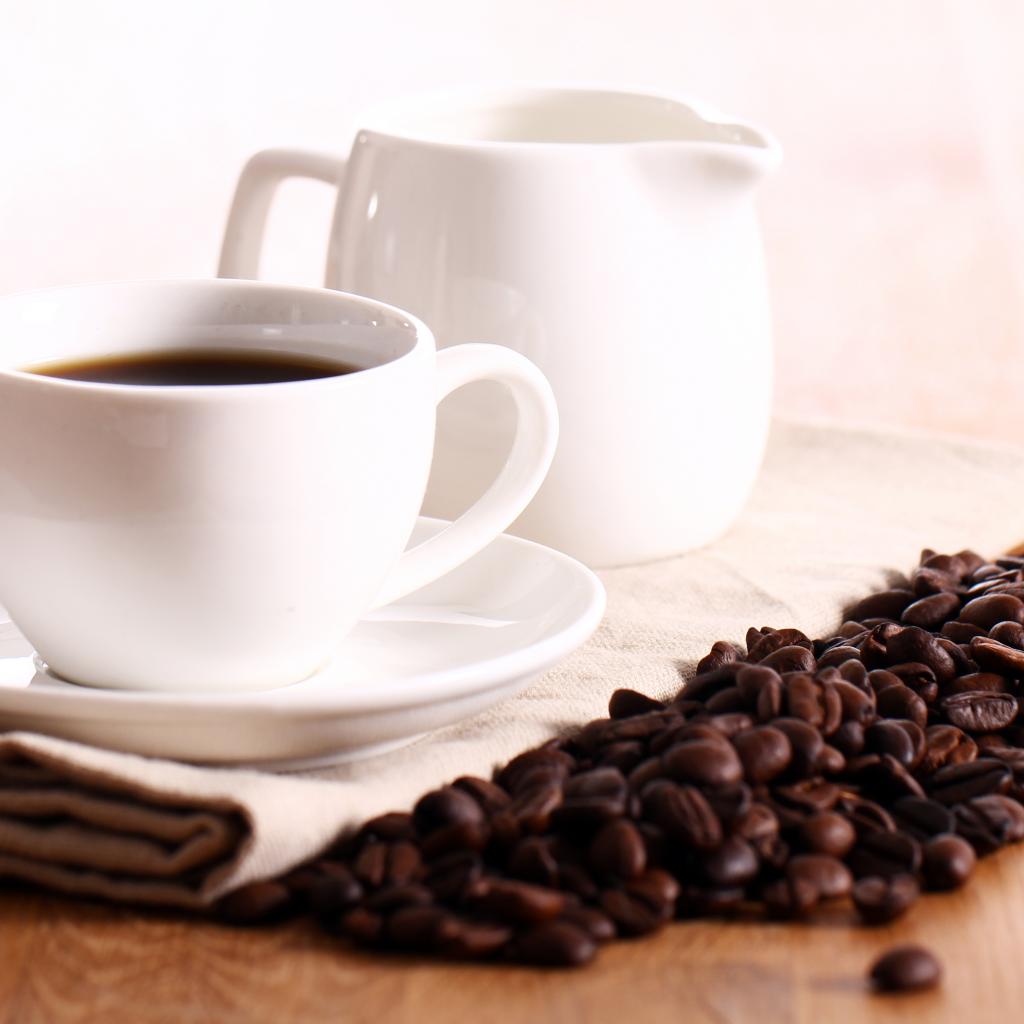 Wallpaper White cup of coffee on table with milk and grains
