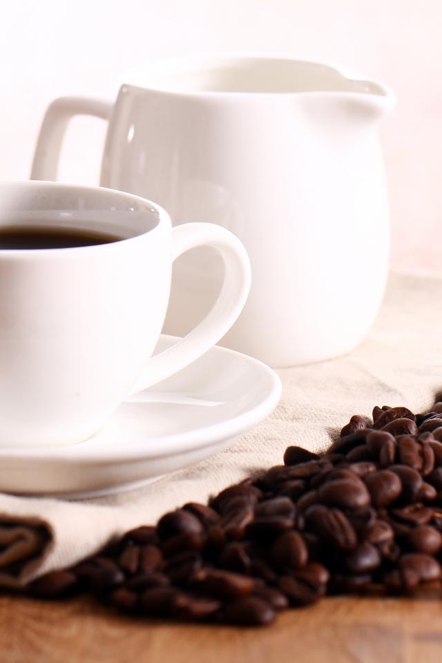 Wallpaper White cup of coffee on table with milk and grains