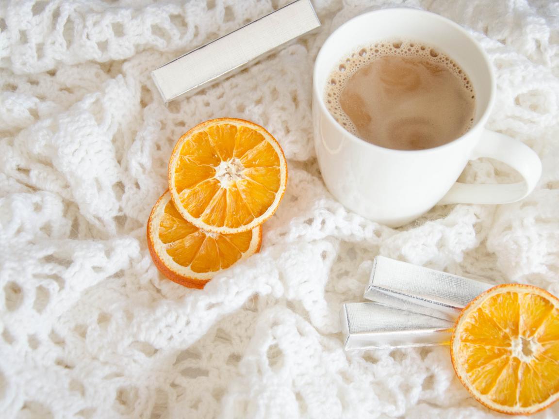 Wallpaper Hot cocoa on a blanket with chocolate and orange