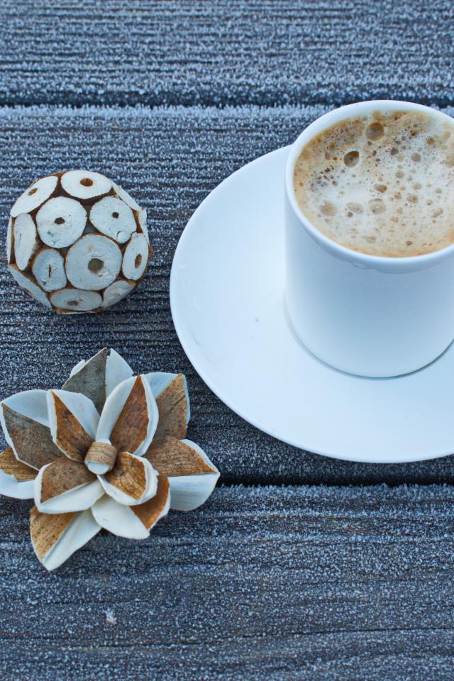 Wallpaper A cup of hot coffee on a frosty table
