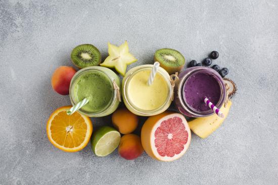 Wallpaper Smoothies in jars on the table with berries and fruits