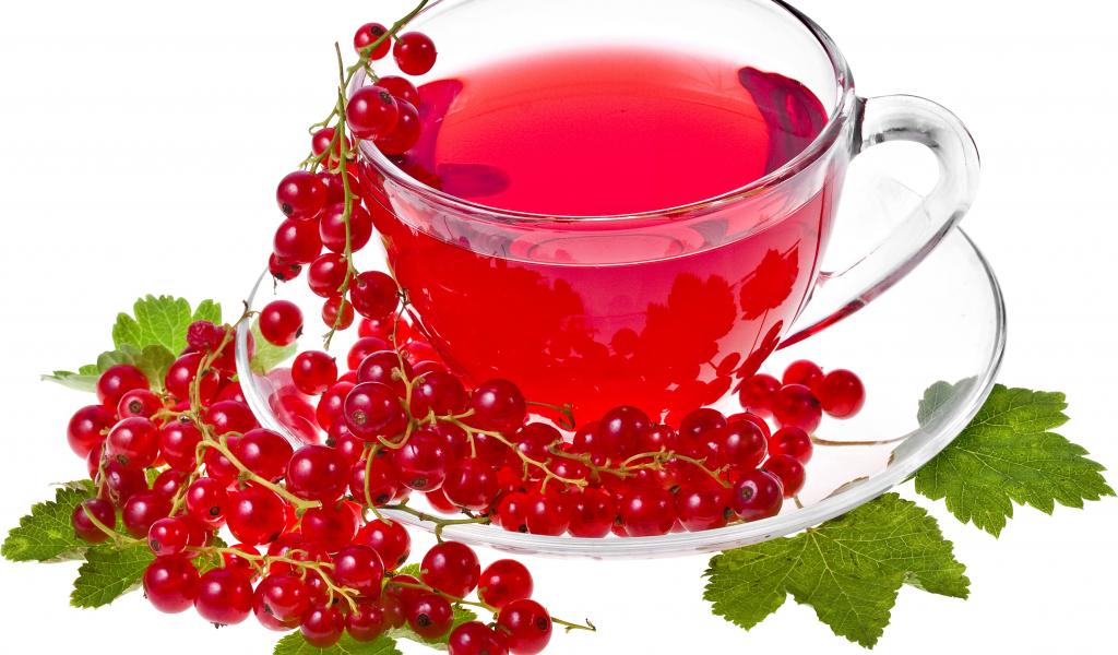 Wallpaper Red tea on a white plate with red currants