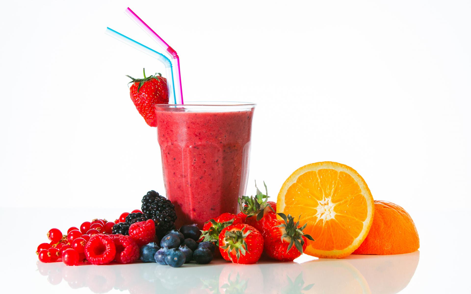 Wallpaper Glass of fresh smoothie on the table with berries