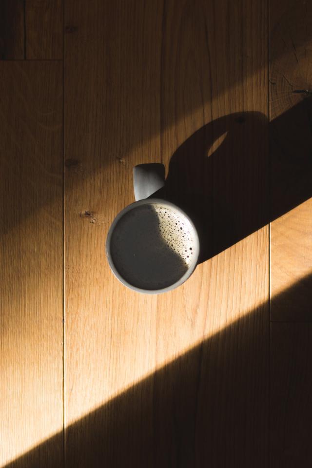 Wallpaper A cup of coffee is on the table in the sun