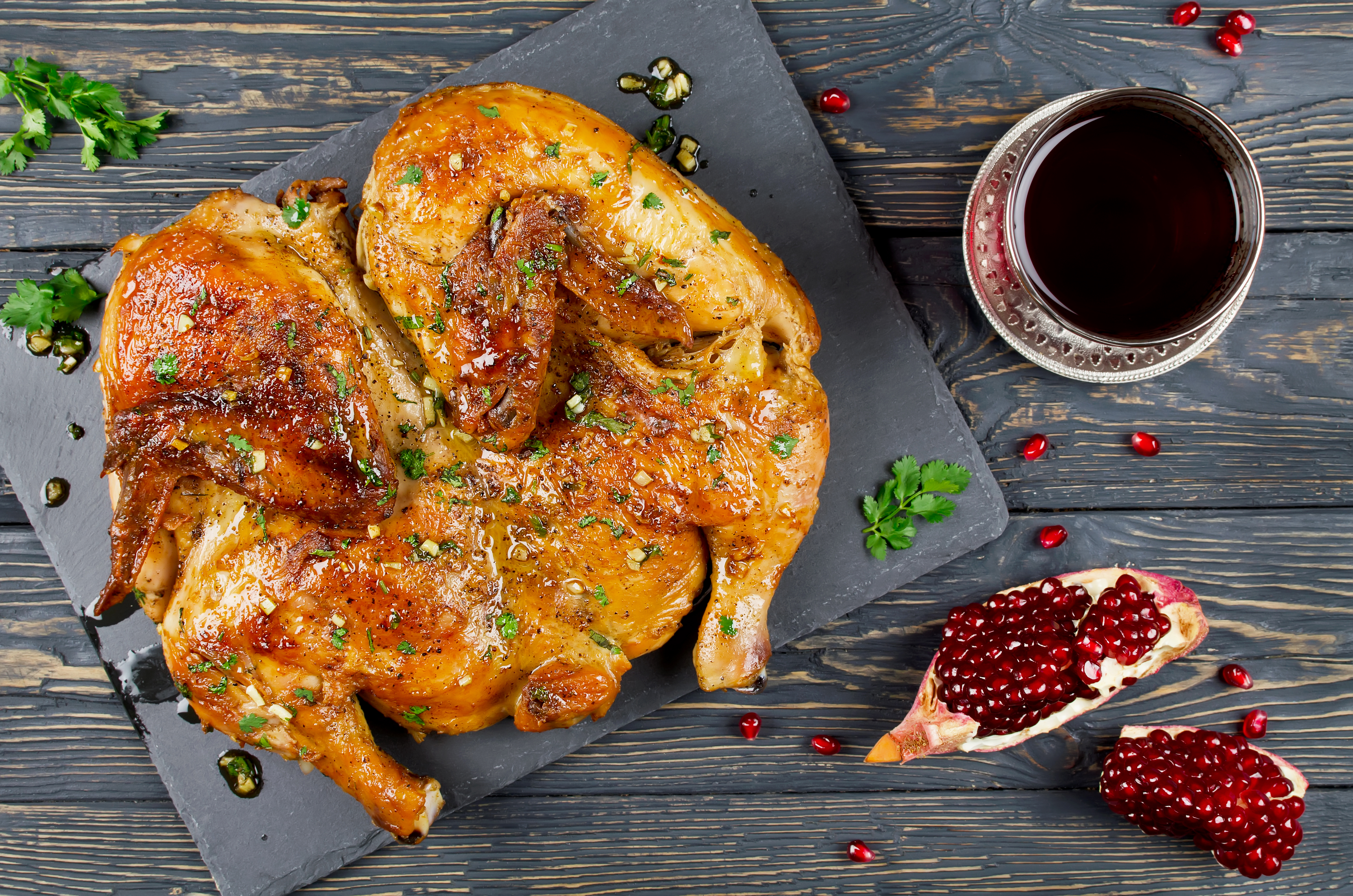 Wallpaper Delicious fried tobacco chicken with pomegranate seeds
