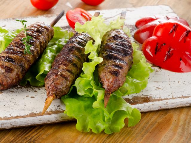 Wallpaper Appetizing kebab with pepper and lettuce