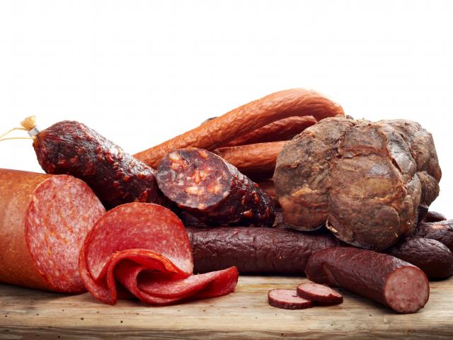 Wallpaper Appetizing sausage and meat on a white background