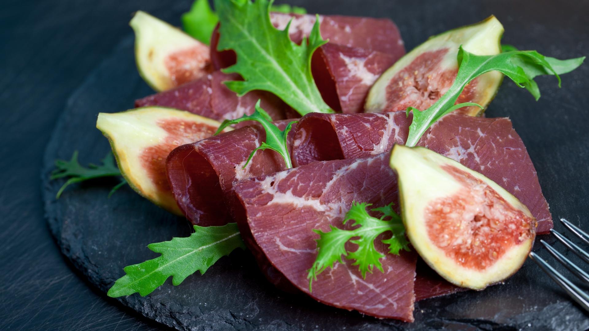 » Wallpaper Rucola with meat and pieces of figs