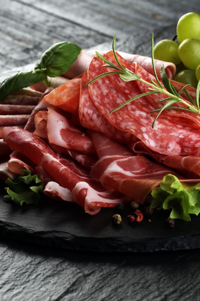 Wallpaper Meat sliced with lettuce and white grapes