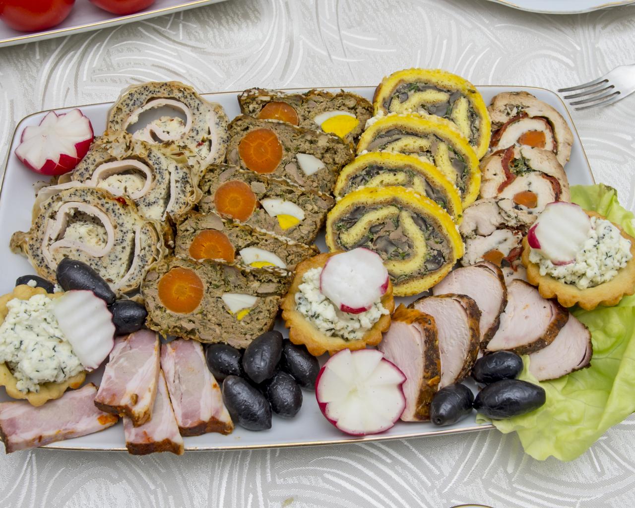 Wallpaper A large dish with appetizing meat cuts, lettuce and olives