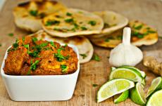 Wallpaper BBQ meat with vegetables and lime on a gray plate