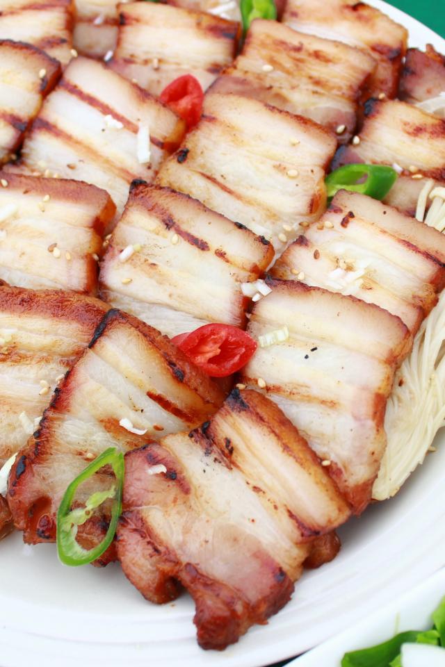 Wallpaper Appetizing smoked bacon on the table with vegetables