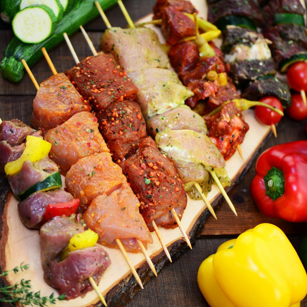 Wallpaper Kebabs on the table with vegetables