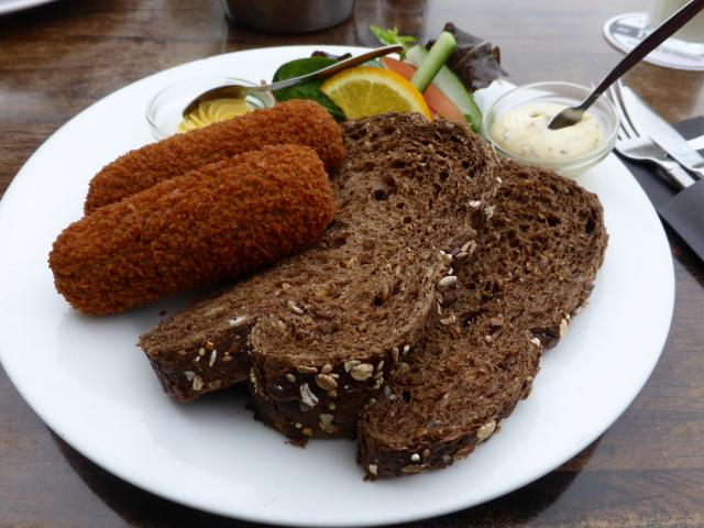 Wallpaper Two pieces of black bread on a plate of chops