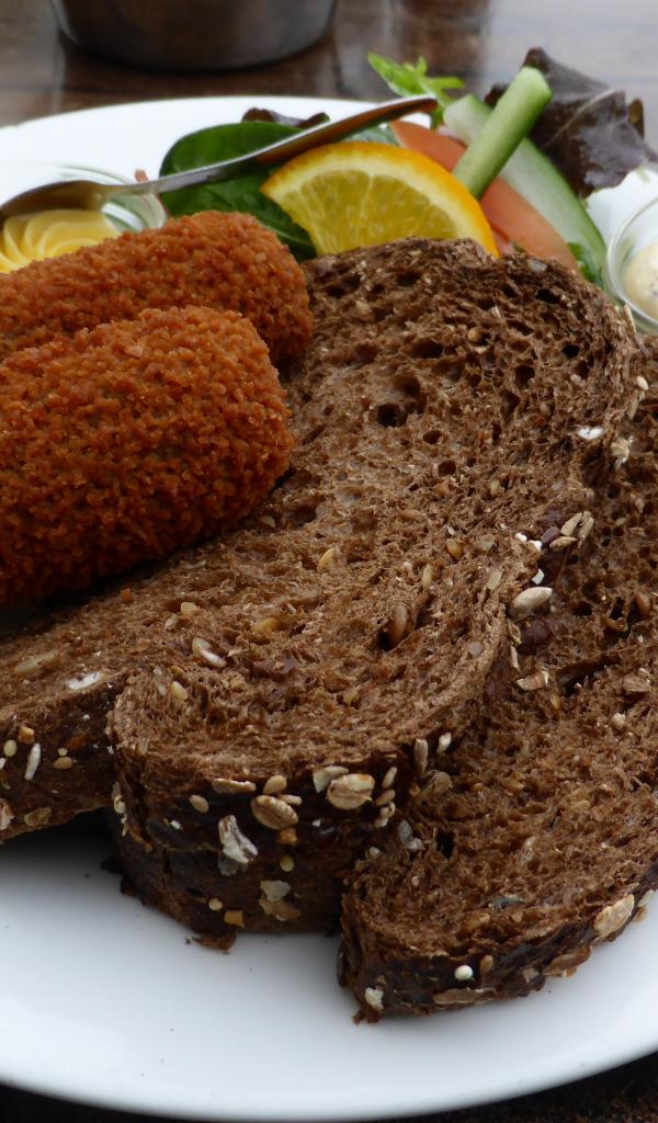 Wallpaper Two pieces of black bread on a plate of chops