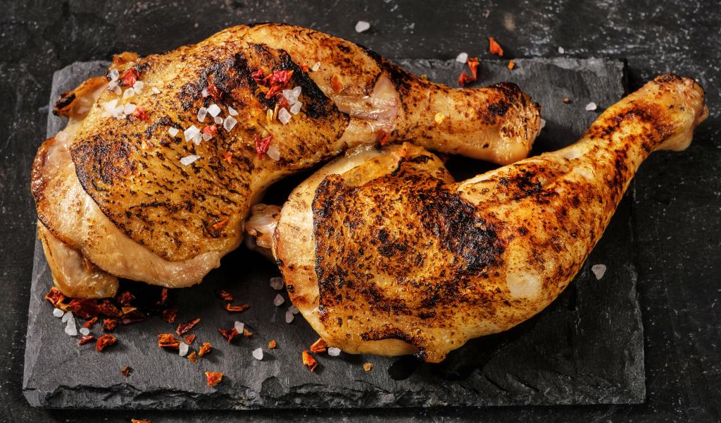 Wallpaper Two baked chicken legs on a black background
