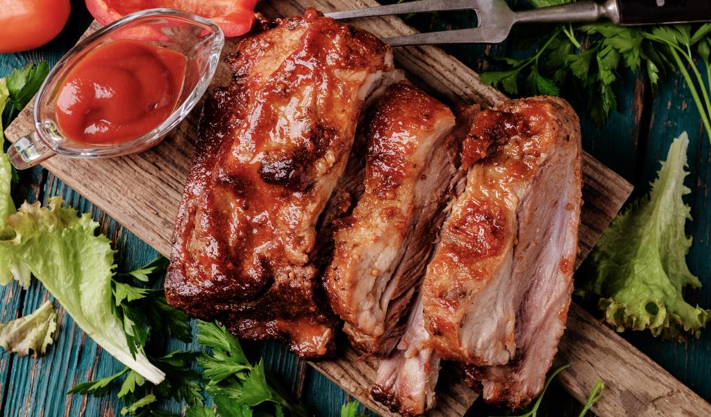 Wallpaper Juicy piece of baked meat on the table with sauce