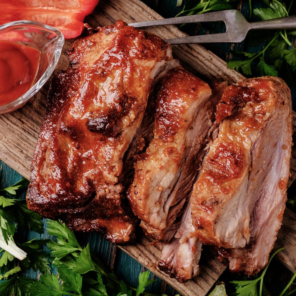 Wallpaper Juicy piece of baked meat on the table with sauce