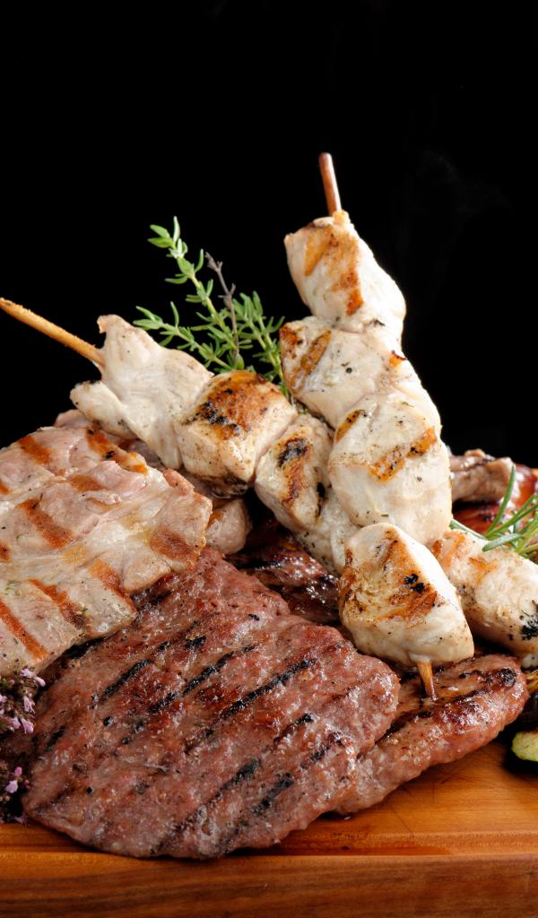 Wallpaper Meat products on the table with french fries