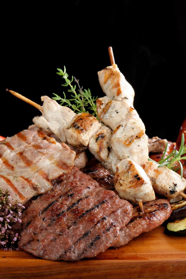 Wallpaper Grilled meat on a board with vegetables