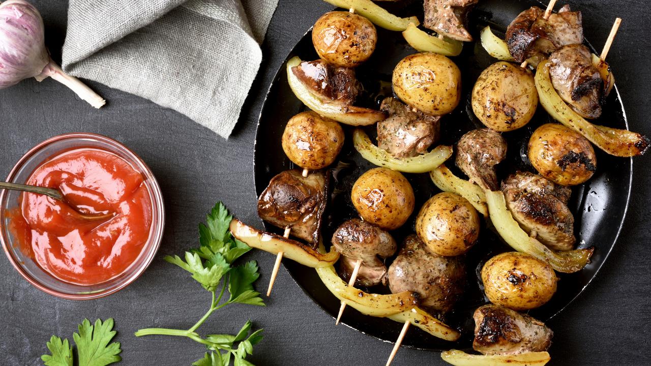 Wallpaper Skewers on skewers with potatoes and peppers