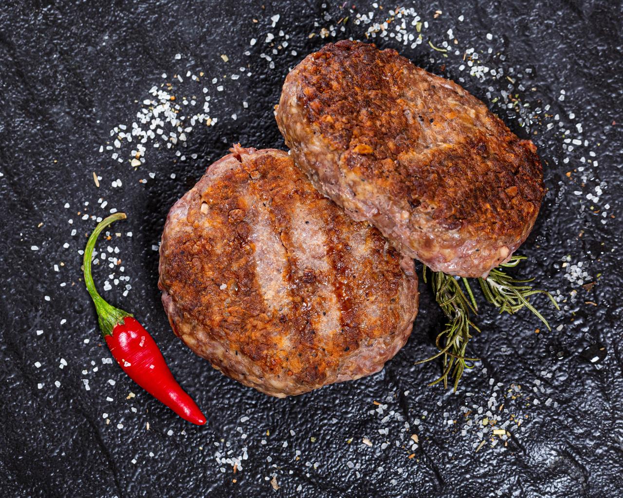 Wallpaper Two cutlets on a black surface with red pepper