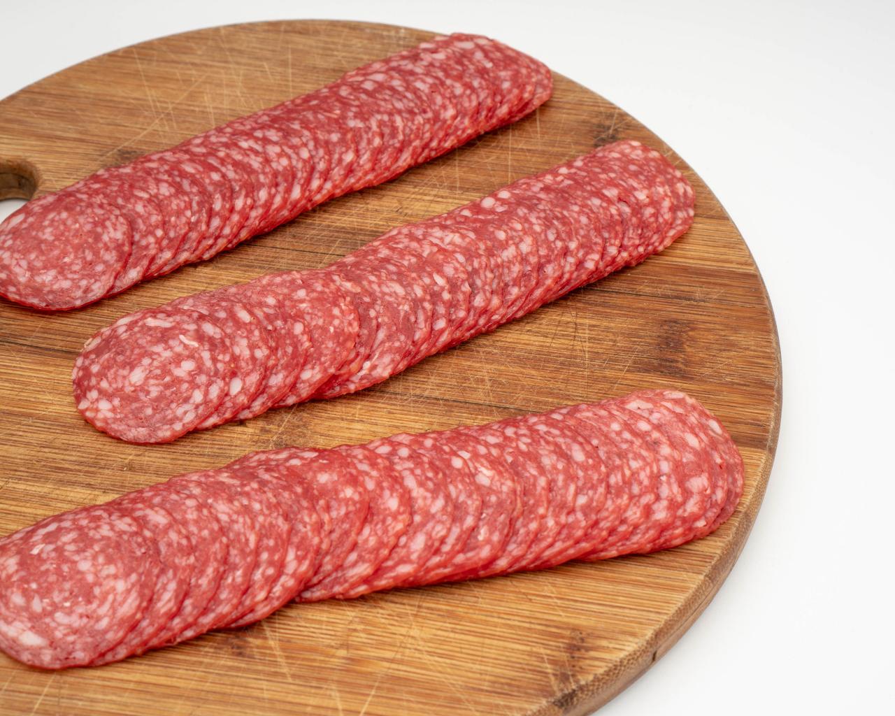 Wallpaper Sausage thinly sliced on a cutting board