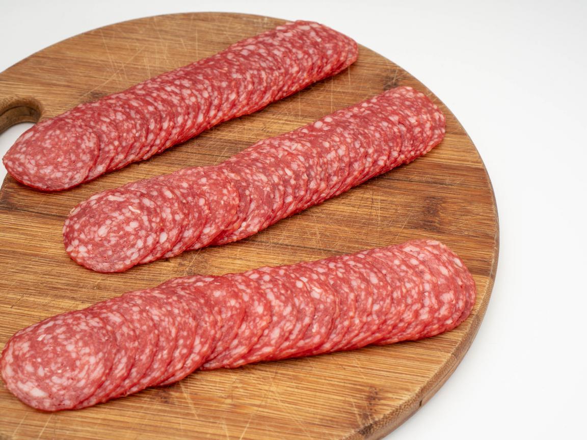 Wallpaper Sausage thinly sliced on a cutting board