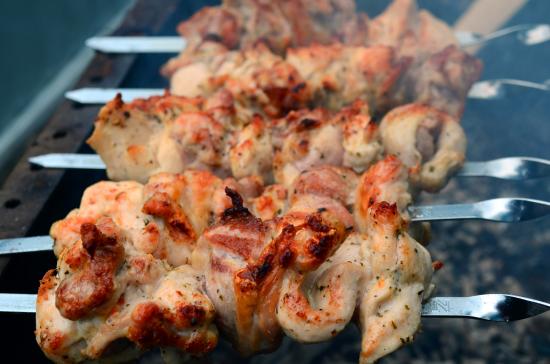 Wallpaper Tasty skewers on wooden skewers with sauce