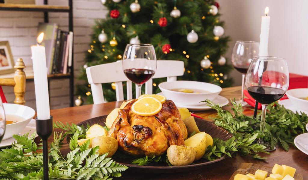 Wallpaper Christmas goose with potatoes on the holiday table
