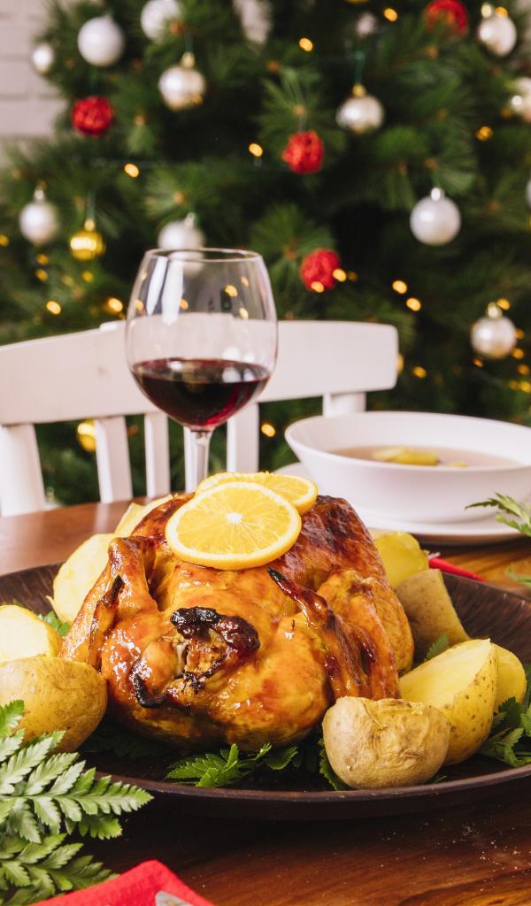 Wallpaper Christmas goose with potatoes on the holiday table