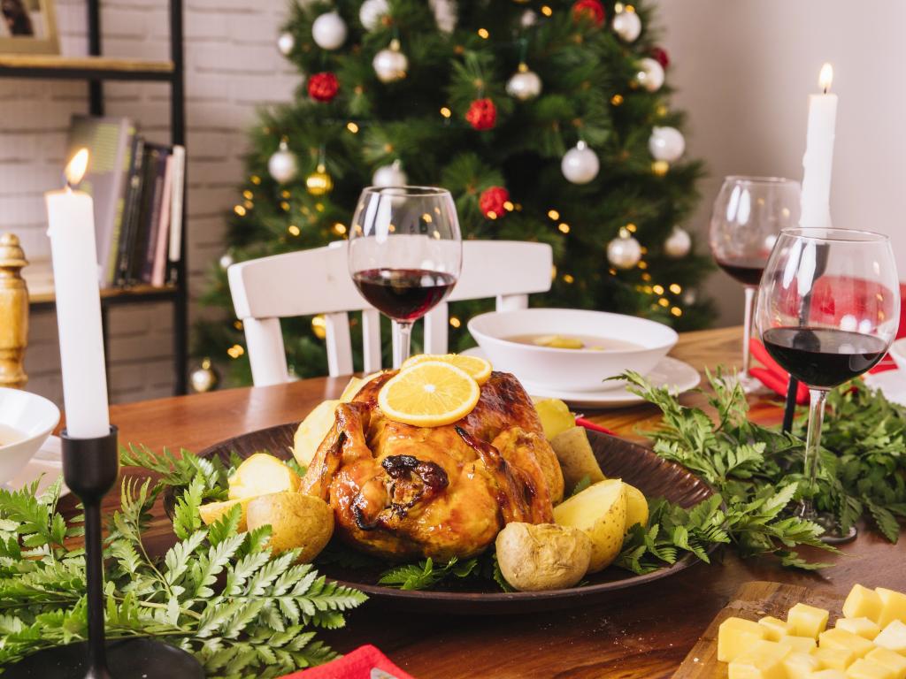 Wallpaper Christmas goose with potatoes on the holiday table