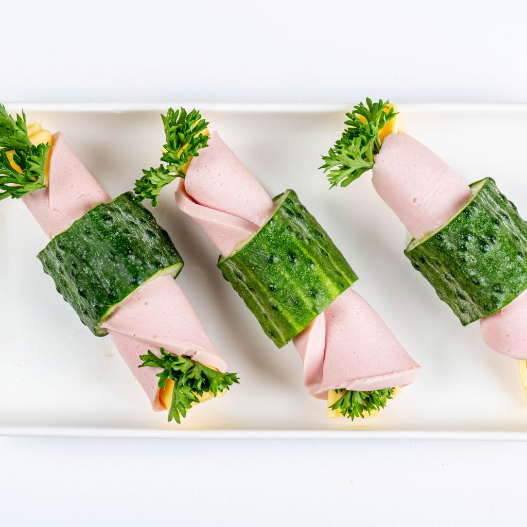Wallpaper Boiled sausage rolls with cheese in cucumbers