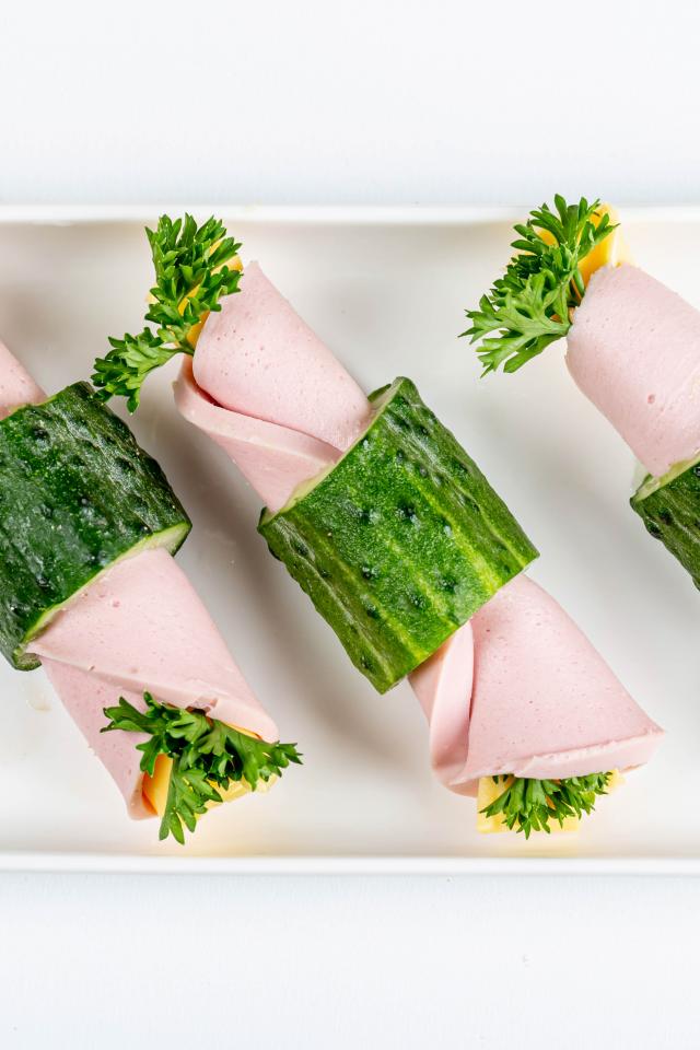 Wallpaper Boiled sausage rolls with cheese in cucumbers