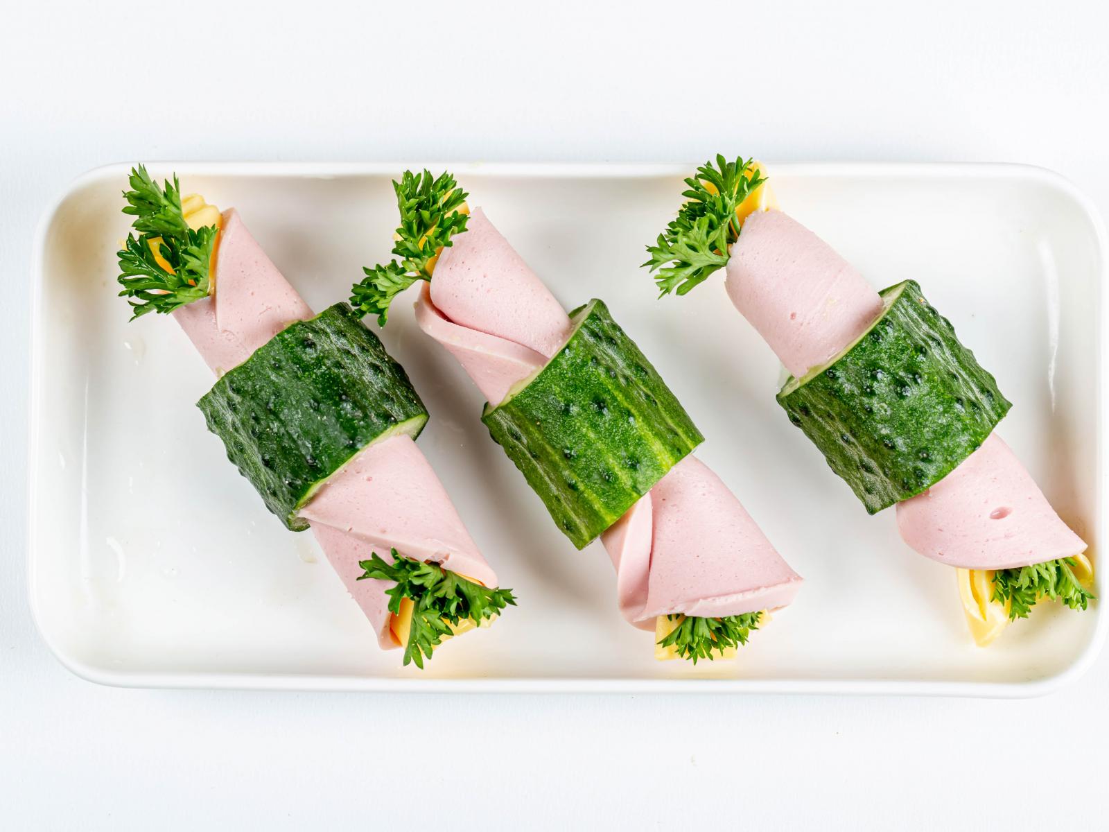 Wallpaper Boiled sausage rolls with cheese in cucumbers