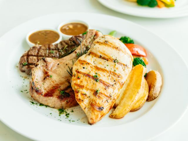 Wallpaper Grilled baked meat on a plate with vegetables