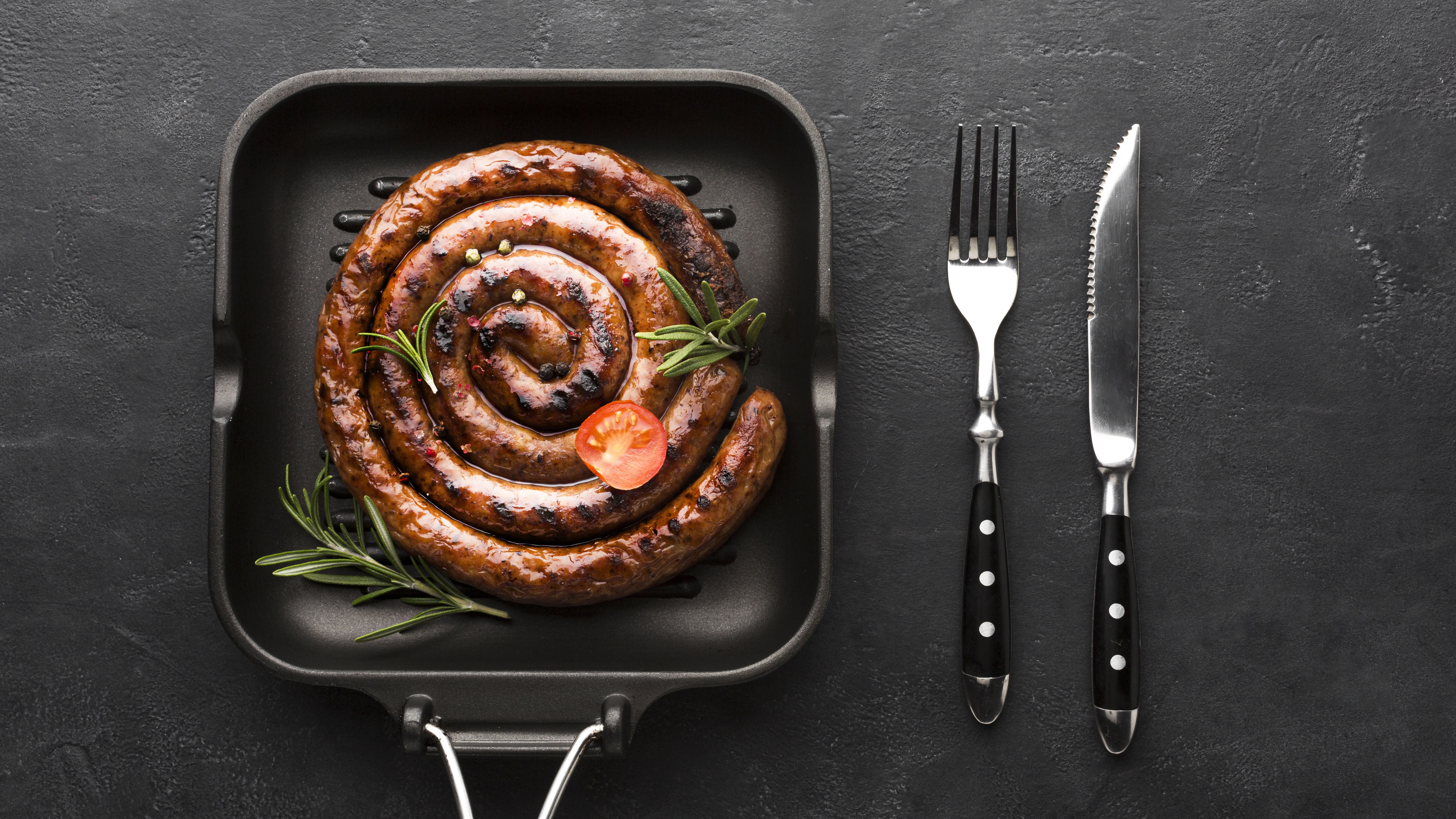 Wallpaper Delicious baked homemade sausage in a pan