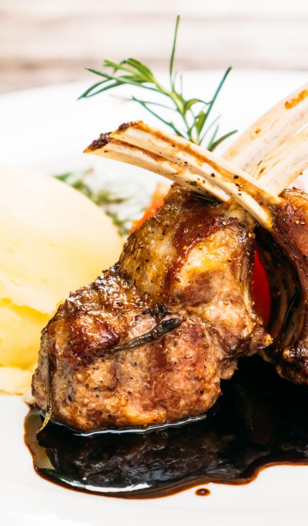 Wallpaper Appetizing pork ribs with mashed potatoes on a plate
