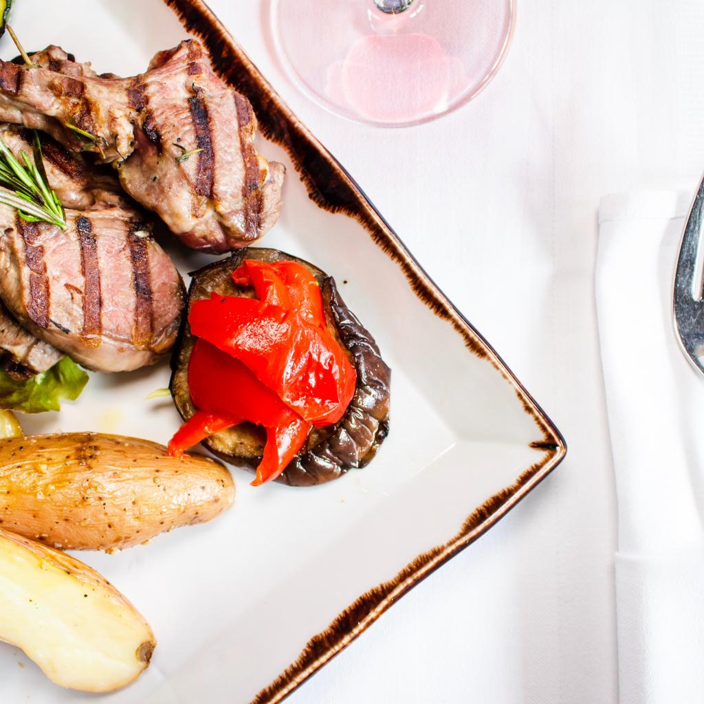 Wallpaper Pork ribs with vegetables on the table