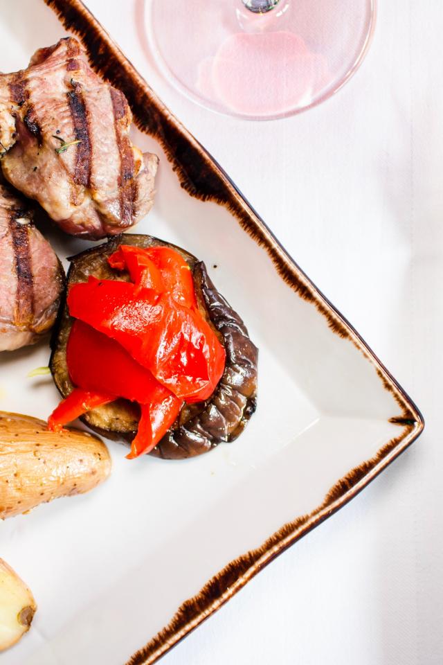 Wallpaper Pork ribs with vegetables on the table