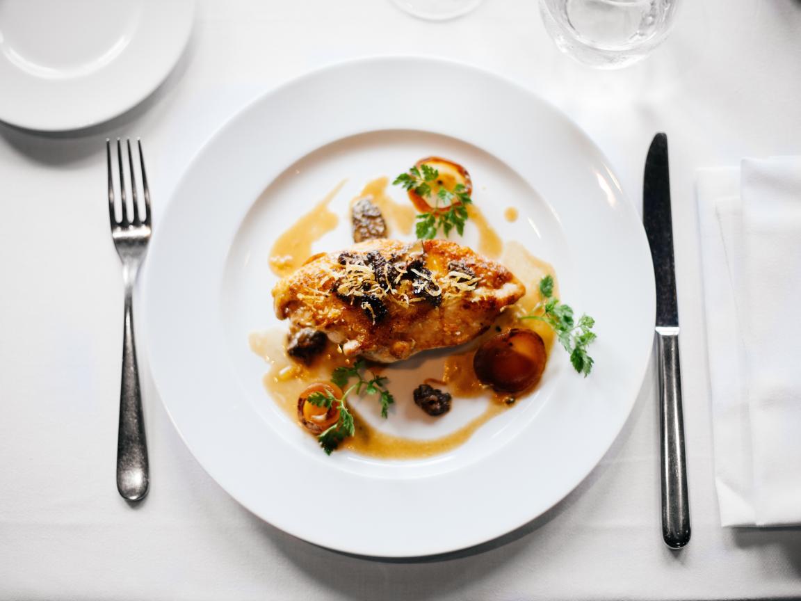 Wallpaper A piece of grilled meat on a large white plate
